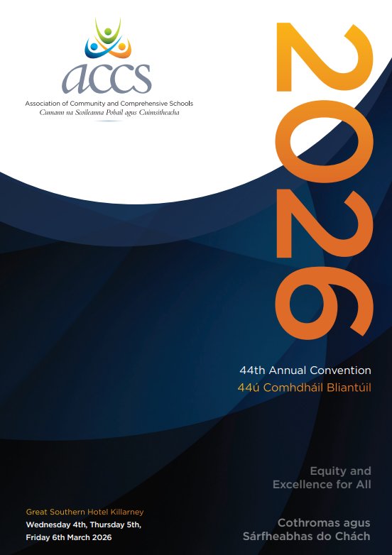 As well as Convention business, Guest speakers include Professor Anne Looney, DCU Institute of Education, and the final of the ACCS All-Ireland Debating competition will be held